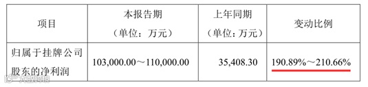 贝特瑞已于10月11日发布业绩预告,这也是今年精选层首份三季度业绩预告。公司预计前三季度归母净利润为10.3亿-11亿元,同比增长190.89%-210.66%。