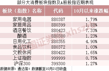 大消费板块10月表现活跃