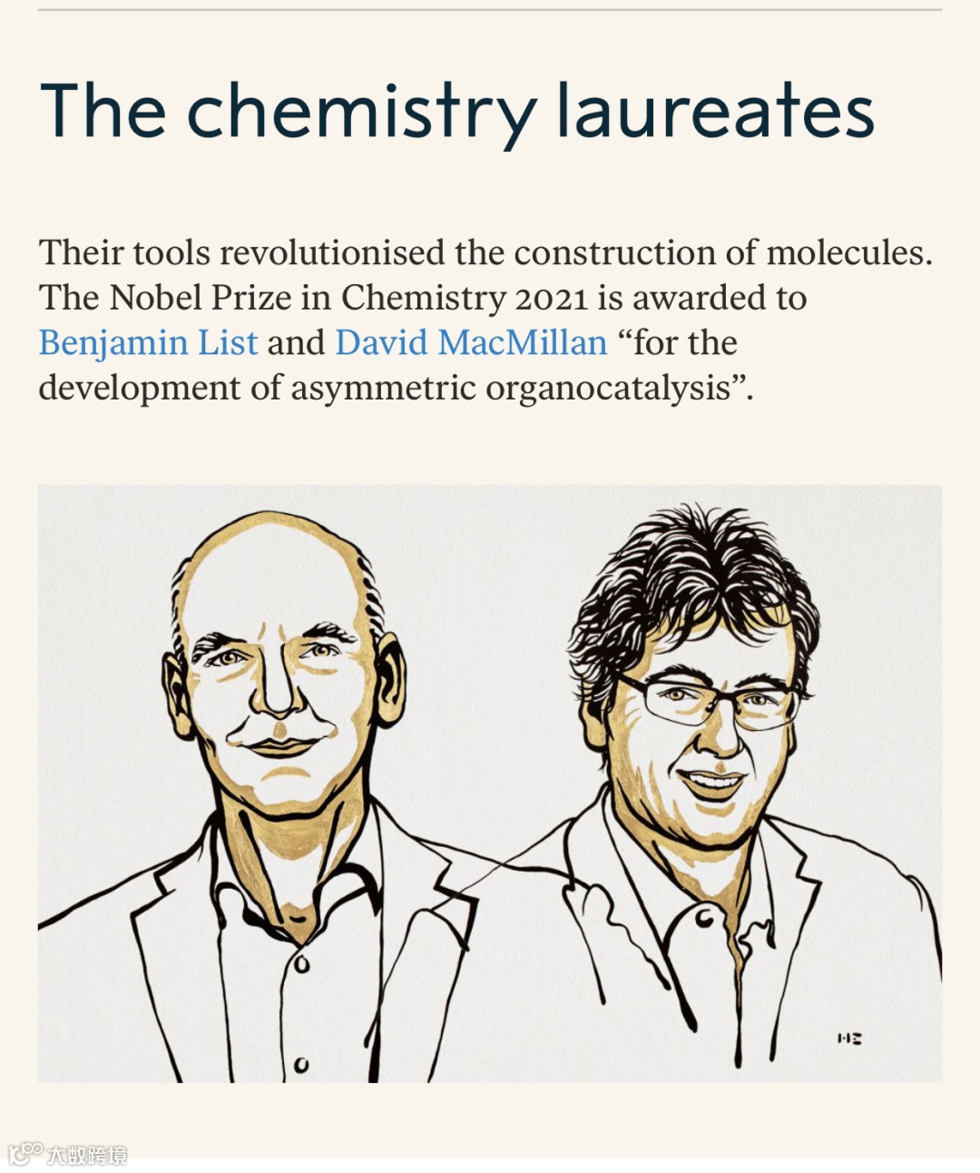 当地时间10月6日,今年第三个诺贝尔奖——化学奖出炉。由德国科学家本杰明·利斯特和美国科学家戴维·麦克米伦共同获得。