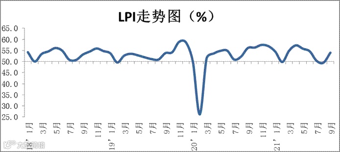 9月份中国物流业景气指数为54%,较上月回升4.5个百分点。
