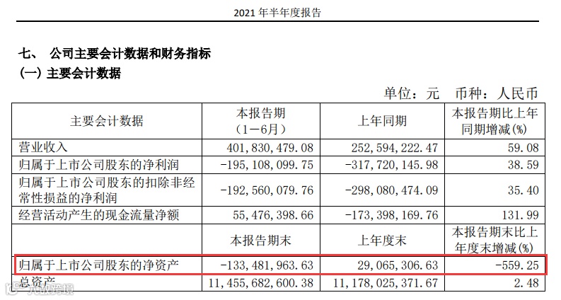 净资产为负 面临退市风险