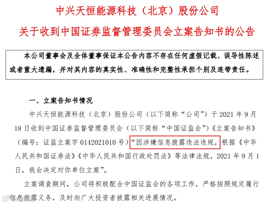 9月21日晚间,ST中天公告称,因涉嫌信息披露违法违规,公司收到中国证监会立案告知书。