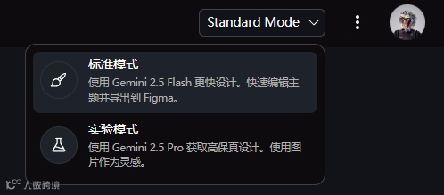 其前身是UI设计工具Galileo AI,支持标准与实验两种模式。