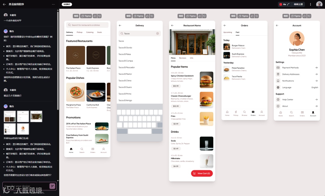 工具经与用户确认风格、布局等关键问题后,短时间内即可生成多页面设计方案,用户还能直接编辑或导入专业软件进一步优化;