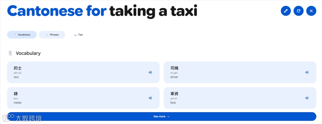 以学习粤语为例,“Tiny lesson”模块提供打车场景实用词汇与注意事项,“Slang hang”模块助力理解地道俚语,在实用性方面表现卓越。