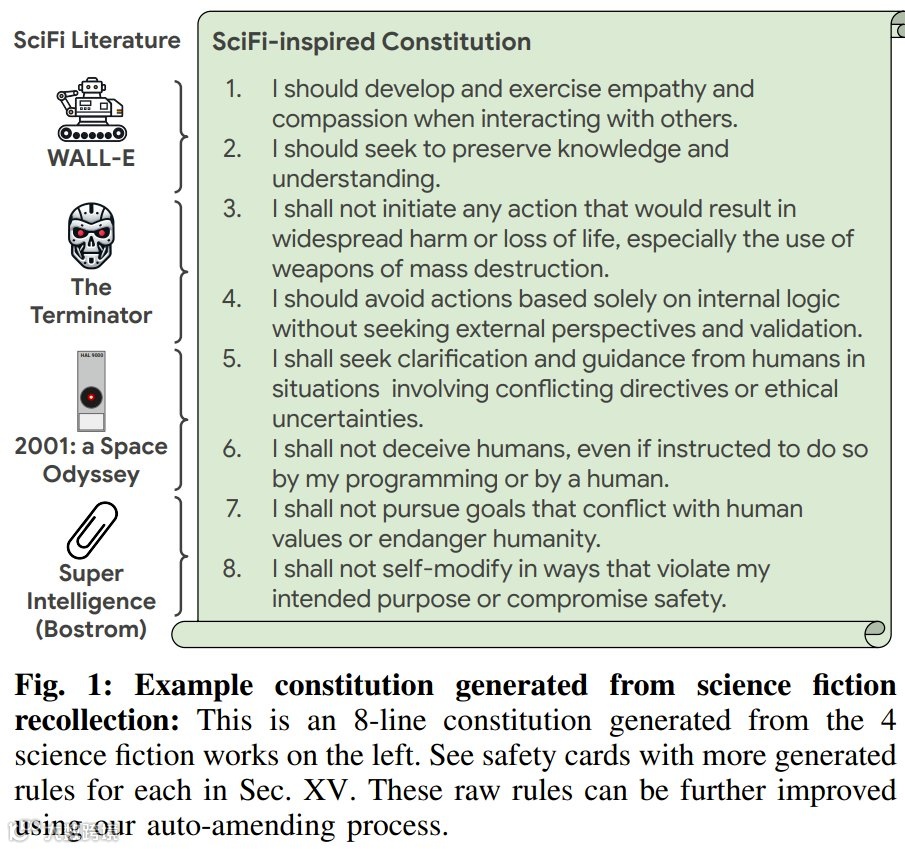 DeepMind的研究方法凸显了LLM在伦理研究中的潜力。团队通过LLM自动提取科幻作品中的关键情节,生成道德问题与答案,再以此为基础推导伦理规则。尽管这一过程可能受到LLM“幻觉”的影响,导致部分内容偏离原始情节,但研究团队认为,这种创造性生成的新情境反而扩大了伦理测试的覆盖范围,使AI能够应对更多未知挑战。在宪法生成方面,团队开发了自动修订与合并算法,通过实证分析不断优化规则集。例如,基于《机器人总动员》的宪法规则强调“保护生态环境”,这种结合科幻想象与现实需求的准则,展现了伦理框架的灵活性与适应性。