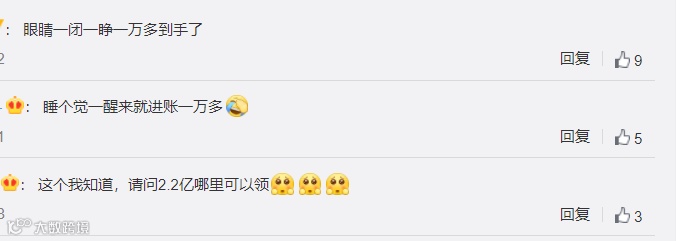 有网友调侃:“眼睛一闭一睁,一万块钱到手了。”还有网友问:“这个我知道,请问2.2亿哪里可以领?”