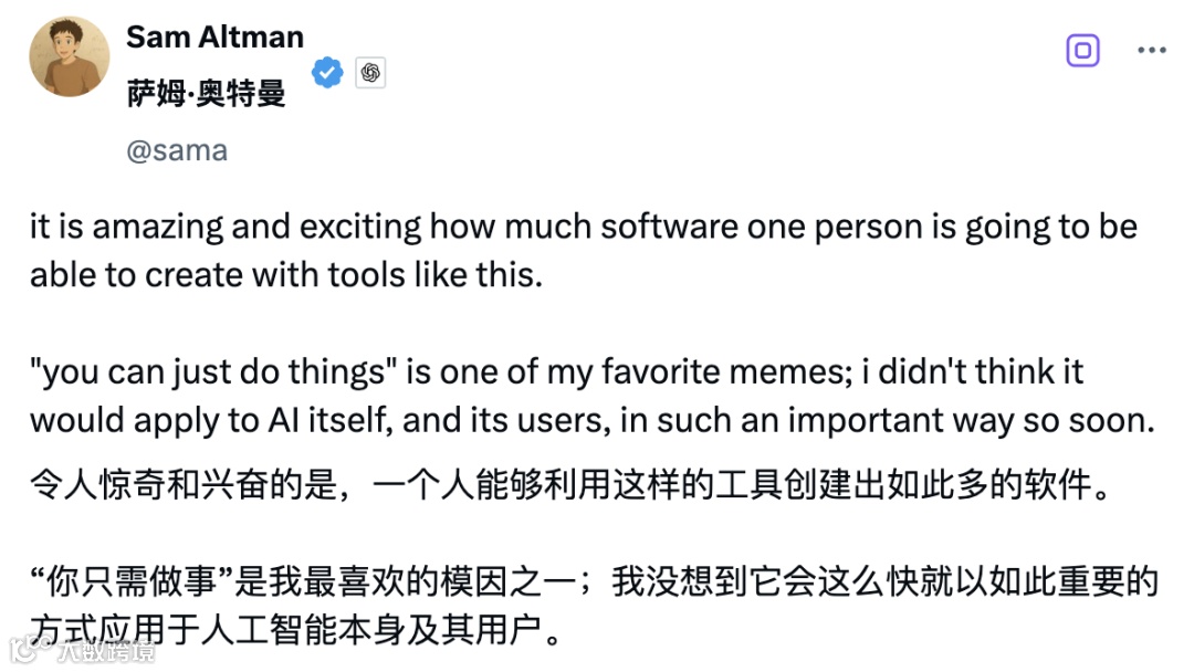 回溯 AI 编程助手的发展历程,从早期的代码补全工具到具备逻辑推理能力的生成模型,行业经历了多次技术突破,但始终未能解决「可用度」与「可靠性」的平衡问题。Codex 的出现标志着这一领域的关键转折:它首次将 AI 编程助手带入工业级应用阶段,让自动写代码、提 PR、修 bug 等曾经停留在科幻层面的设想,成为可嵌入实际工作流的成熟工具。当 Altman 在推文中感慨「一个人能开发出的软件数量令人惊叹」时,他所描述的不仅是工具效率的提升,更是对软件开发「摩尔定律」的重新定义 —— 借助 Codex 这样的智能体,个体开发者的产能边界被极大拓展,「一人十亿级美元 SaaS」的创业神话或将从特例变为可能。