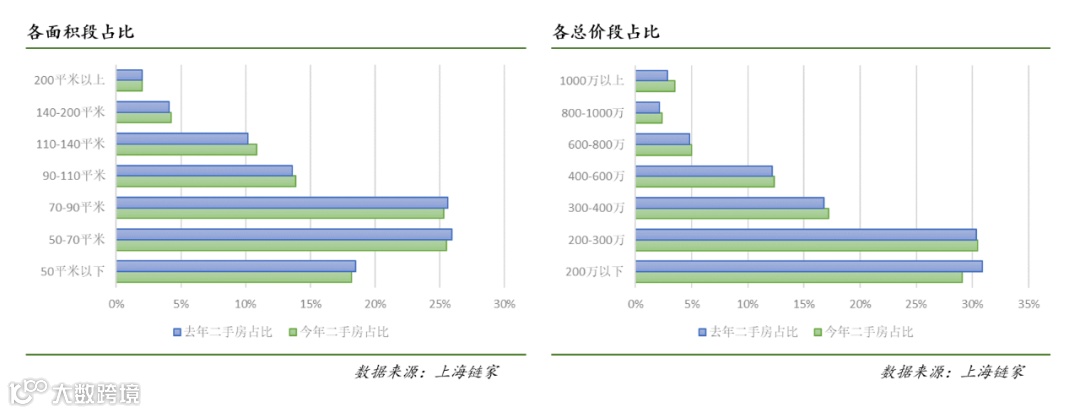 从总价来看,200万元以下的占比减少了1个百分点,1000万元以上的占比增加了1个百分点。