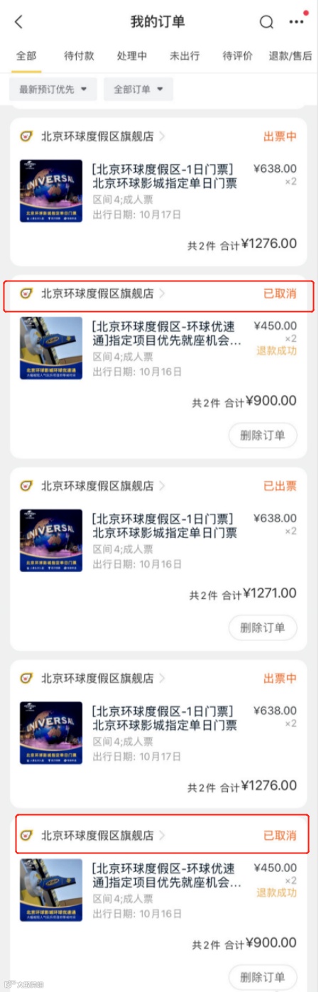 据悉,受影响的OTA平台包括飞猪、美团等。某OTA平台人士指出,目前被退票主要集中于无限优速通票,主要源于环球影城后台崩溃,OTA平台并不知悉该情况所致。