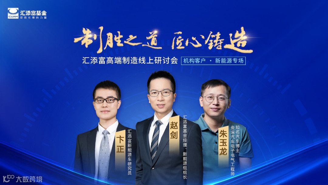 该系列研讨会专为机构客户打造,专注于高端制造板块的各个细分领域。在此之前,汇添富基金已先后举办了光伏、半导体和科技专场会议,获得了机构客户的一致好评。本次新能源专场会议邀请到了资深汽车电子电气工程师、知名汽车博主朱玉龙,汇添富新能源组组长、汇添富环保行业的基金经理赵剑,以及汇添富资深新能源车研究员卞正三位重磅嘉宾。