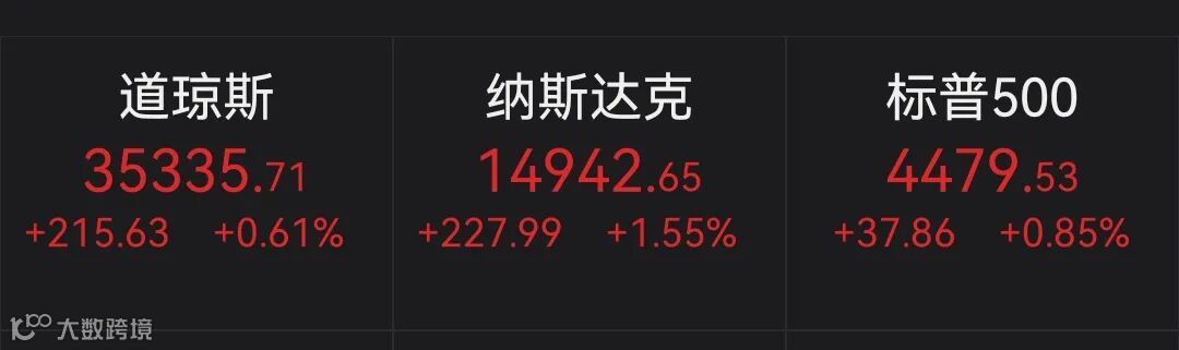 美三大股指周一上涨 纳指涨1.55%创新高
