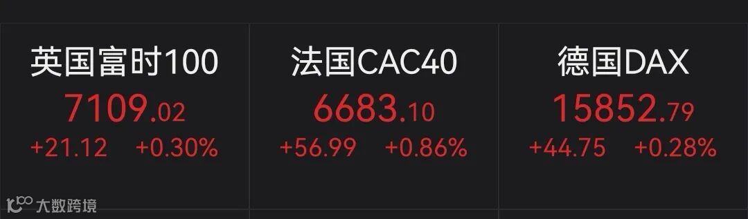 欧洲三大股指周一上涨