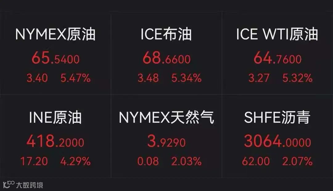 国际油价周一涨逾5%