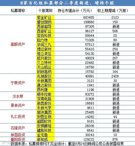 八大私募新进或增持这些股票