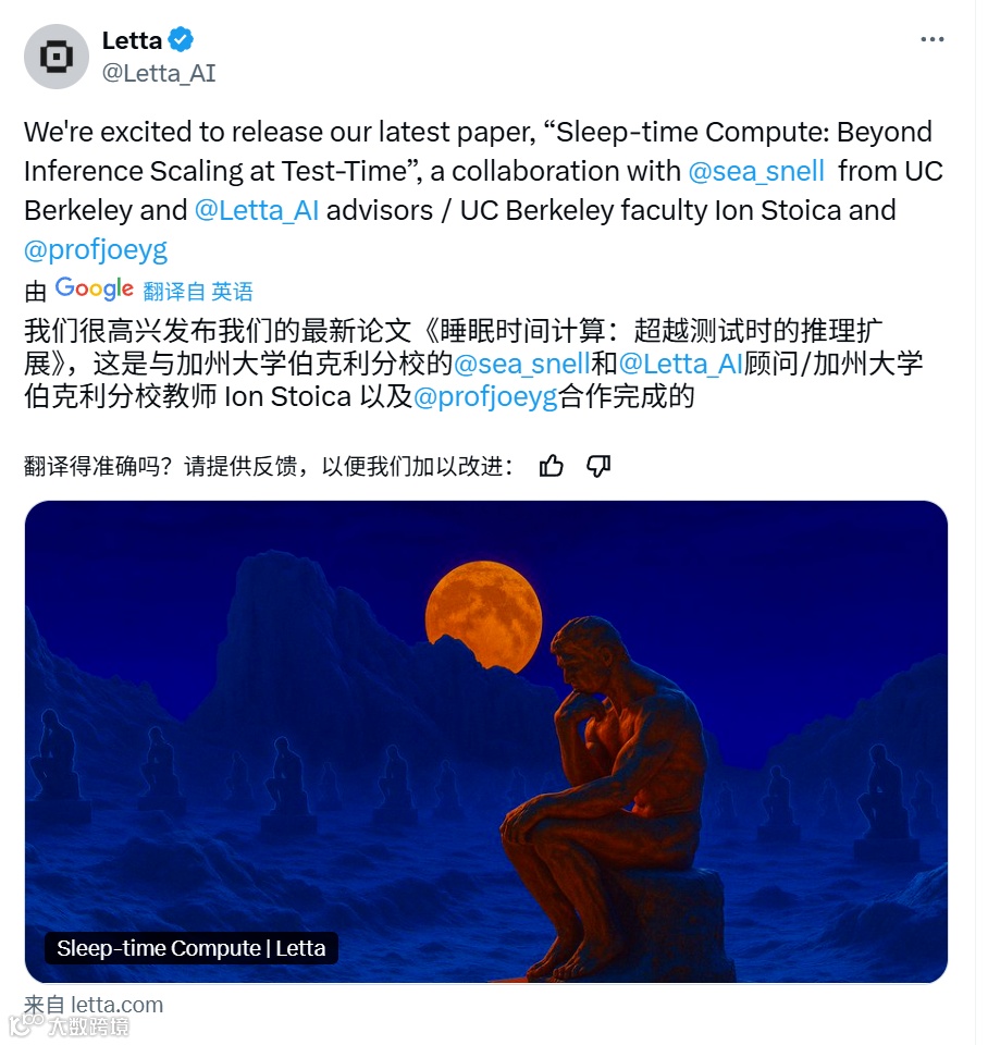 在当今人工智能飞速发展的时代,如何进一步提升人工智能系统的能力,成为了众多研究人员和机构关注的焦点。近日,AI 初创公司 Letta 和 UC 伯克利的研究人员提出的一种全新的扩展人工智能能力的方式 —— 睡眠时间计算(Sleep-time Compute),引发了广泛的关注和讨论。