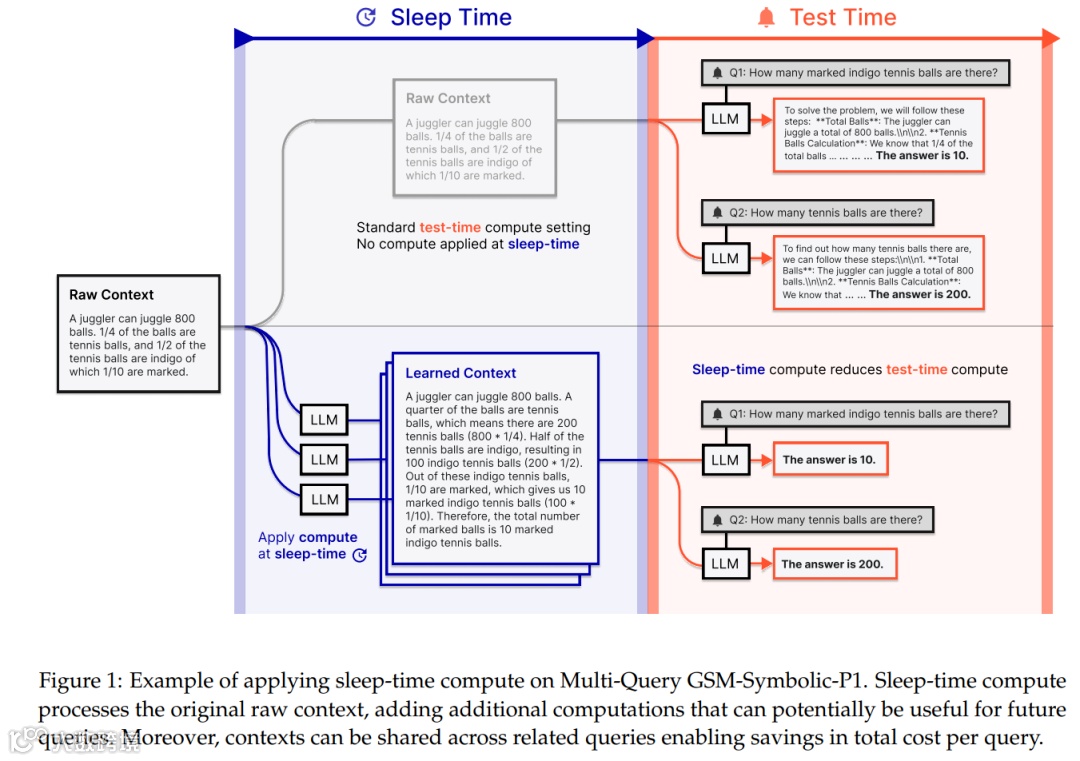 在睡眠时段执行推理的过程,是将「原始上下文」转化为「学习到的上下文」的过程。拥有预处理能力的智能体,相较于仅拥有原始上下文的智能体,在实际应答时能够大大减少即时推理计算的负担。因为它们已经在空闲时间进行了思考,做好了充分的准备。