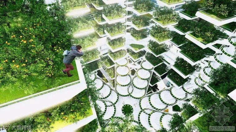 垂直农场的大胆构想最初是由美国哥伦比亚大学环境科学和微生物学教授迪克森·德波米耶(Dickson Despommier)提出的,即将农产品、牲畜养殖等农业环节放入到可模拟农作物生长环境的多层建筑物中,并通过能源加工处理系统,实现城市粮食与能源的自给自足。该概念倡导在城市中探索新型农业生产模式,以解决未来城市中粮食供应、资源优化和人类生存之间的矛盾和问题。其构造模式完全颠覆了人类几千年来的耕种方式,粮食作物第一次离开其赖以生长的土地,在高楼中成长、收割。
