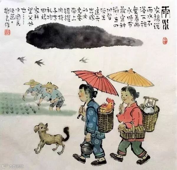 雨水后,降雨增多。桃花梨花含苞,草地树梢多了一丝绿意,忙碌的春耕也开始了。