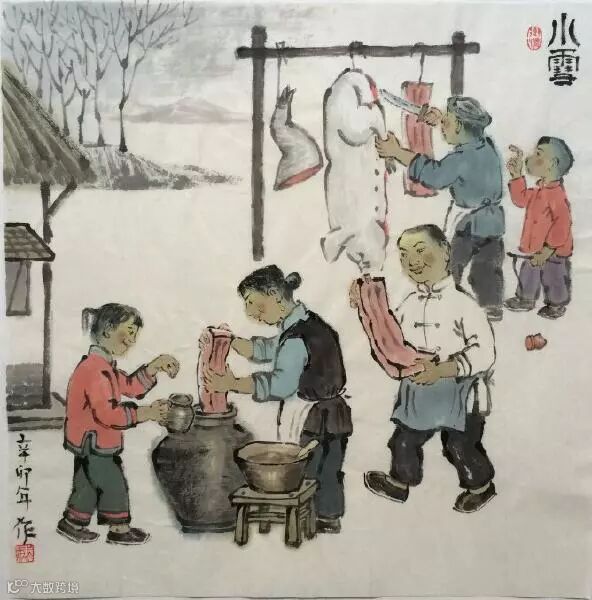 小雪时,腌腊肉是南方人最熟悉的民俗。所谓“冬腊风腌,蓄以御冬”,小雪后气温急剧下降,天气变得干燥,是加工腊肉的好时候。
