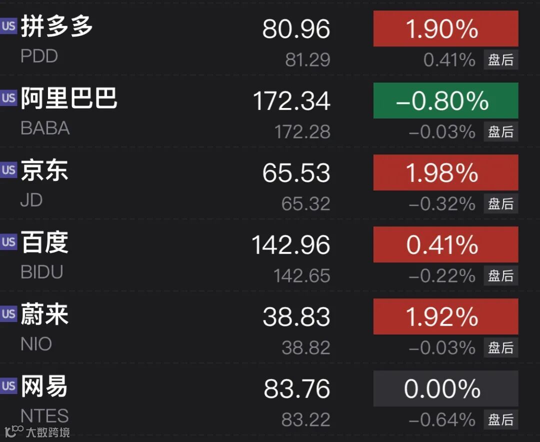 热门中概股涨跌不一