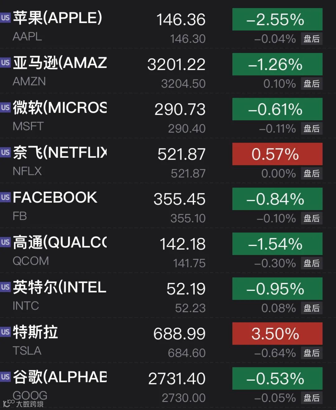 龙头科技股多数下跌
