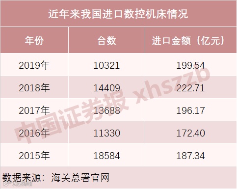 目前,在机床高端供应链中,我国处于中下游位置,缺乏主导权,高端机床及核心零部件依赖进口。中国证券报记者根据海关总署披露的数据统计,2015年-2019年,我国进口的数控机床合计达68332台,进口总金额达978亿元。