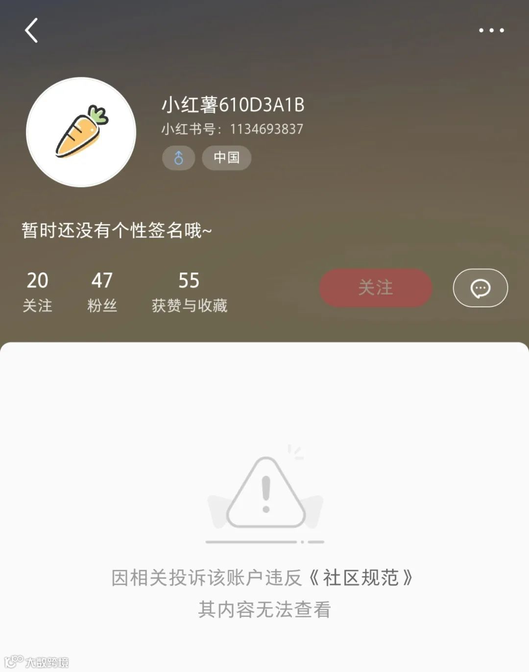但中证君点开这位“lv中古盲盒”的小红书博主页面,发现其账号因违法相关规定,已被关停。