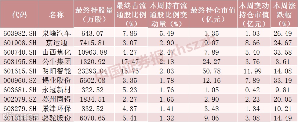 从市场表现上来看,本周北向资金流通股比例增加的前十股均上涨,山西焦化、锡业股份本周累计涨逾30%。