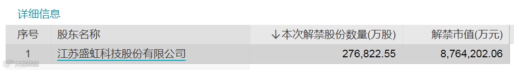 东方盛虹解禁详细信息