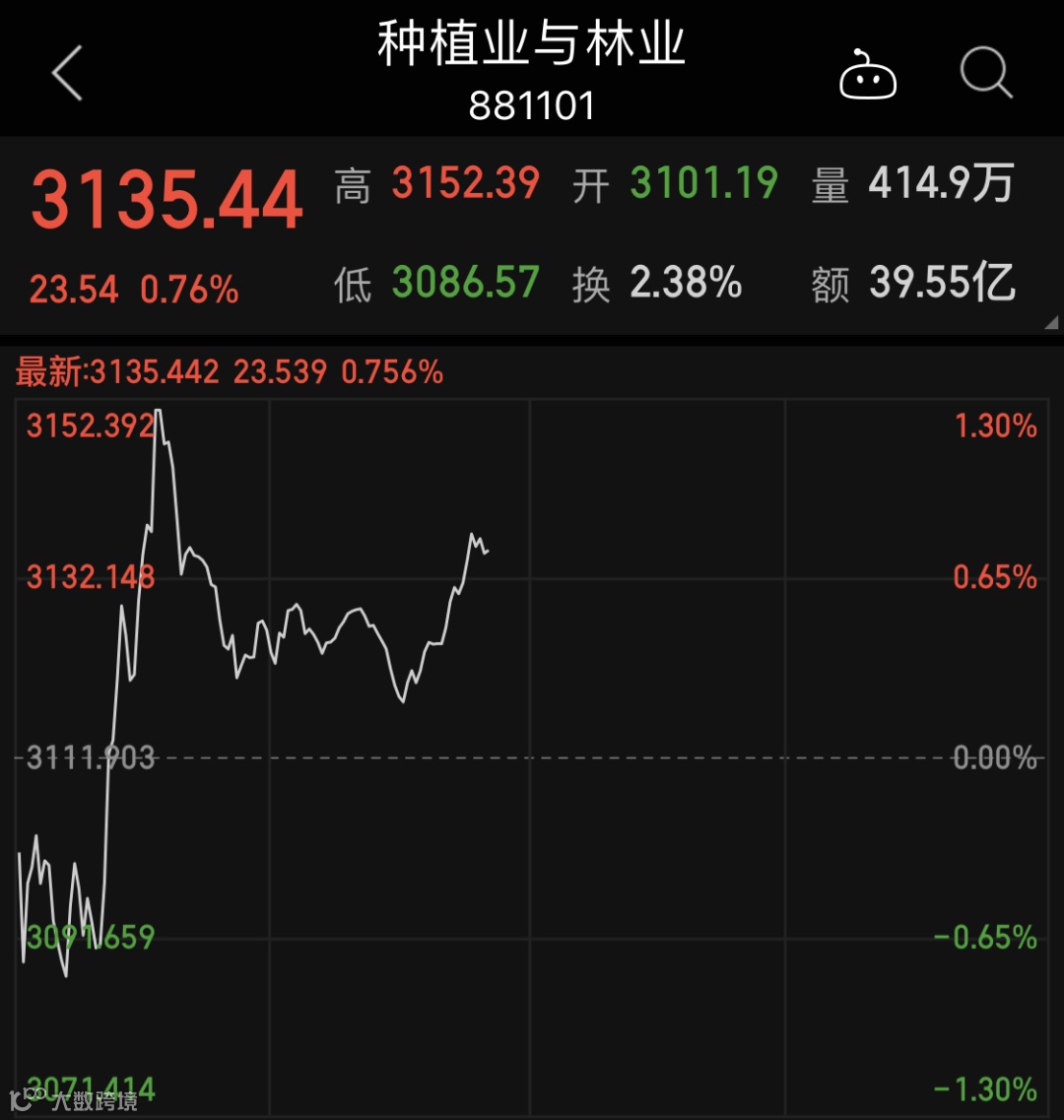 截至午间收盘,种业种植板块集体回暖。荃银高科涨近7%,神农科技、隆平高科、登海种业涨幅居前。同时,养殖业多股盘面拉升。