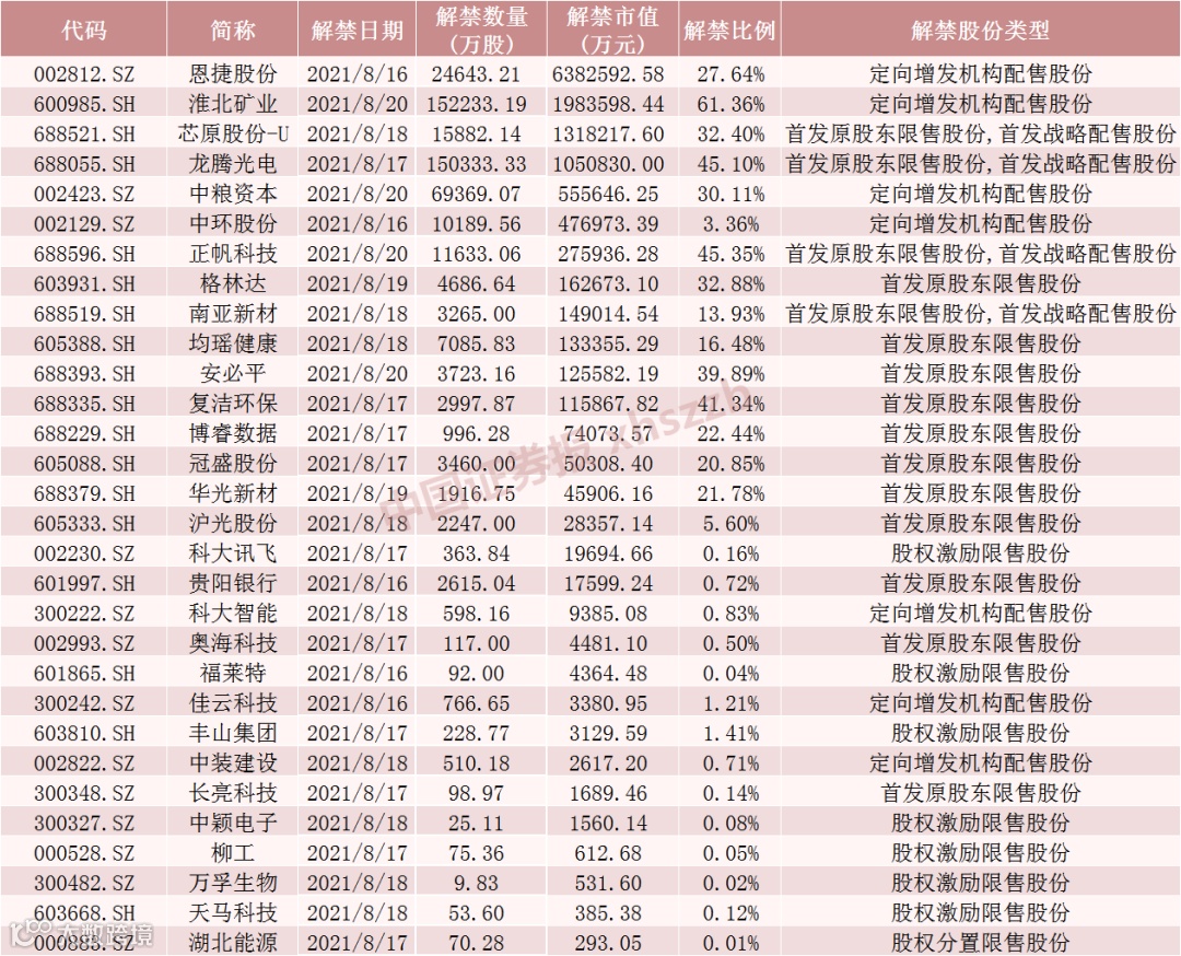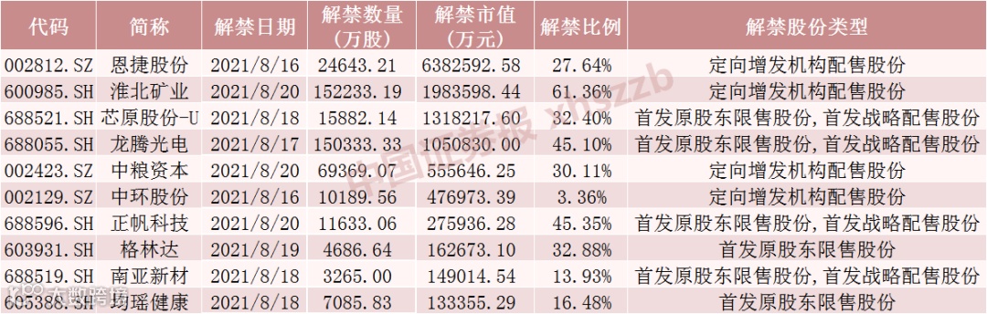 下周解禁股全名单