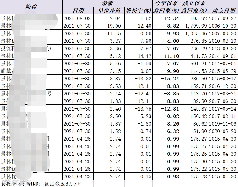 景林多只产品出现较大回撤