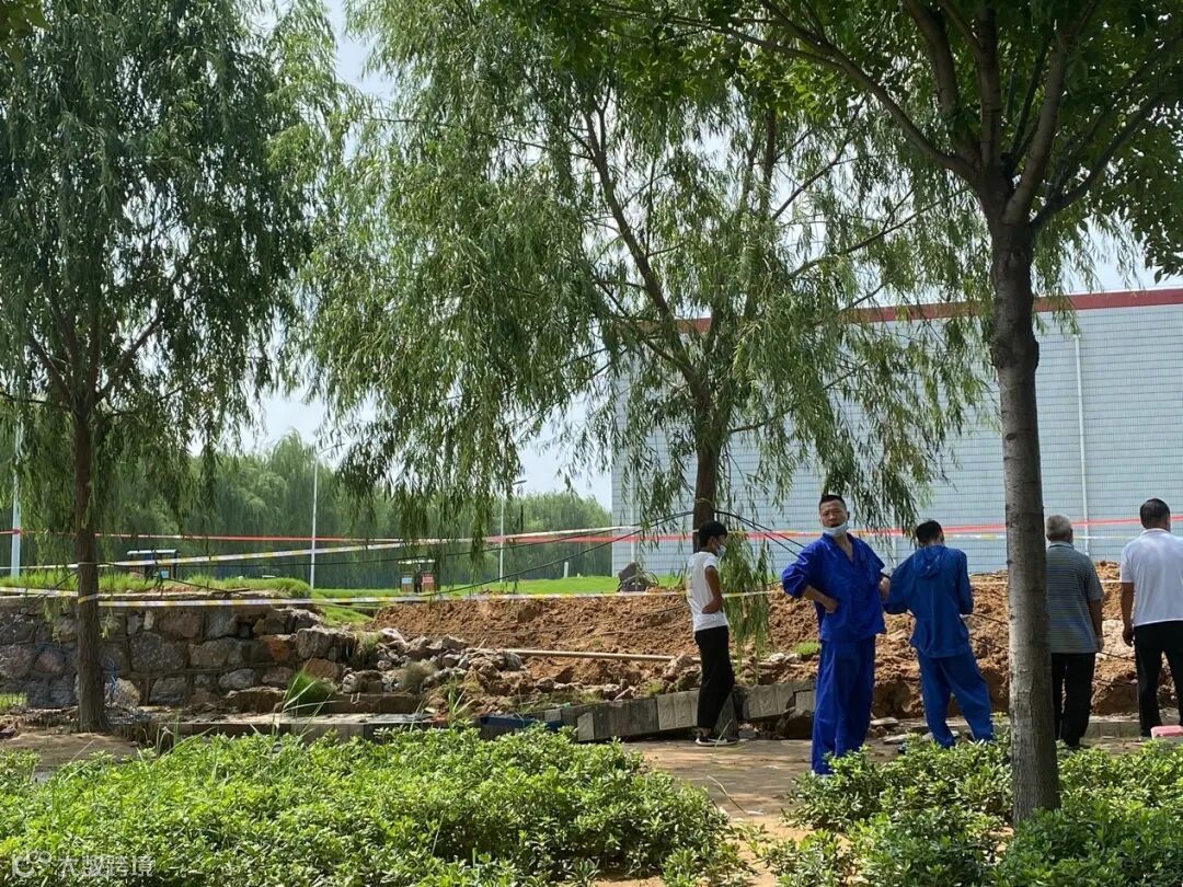 工作人员正在抢修厂区的外围围墙