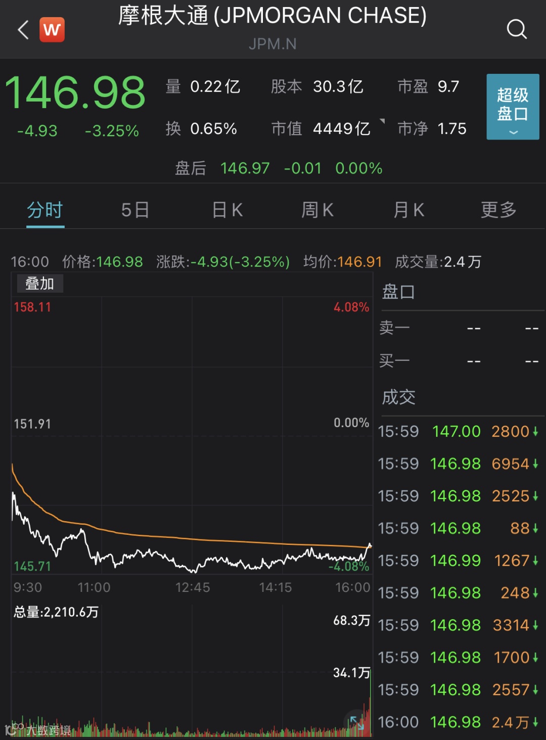 主要银行股跌幅更为明显。摩根大通跌3.25%,高盛集团跌2.67%,花旗集团跌2.59%,摩根士丹利跌2.09%,美国银行跌2.58%,富国银行跌2.66%。