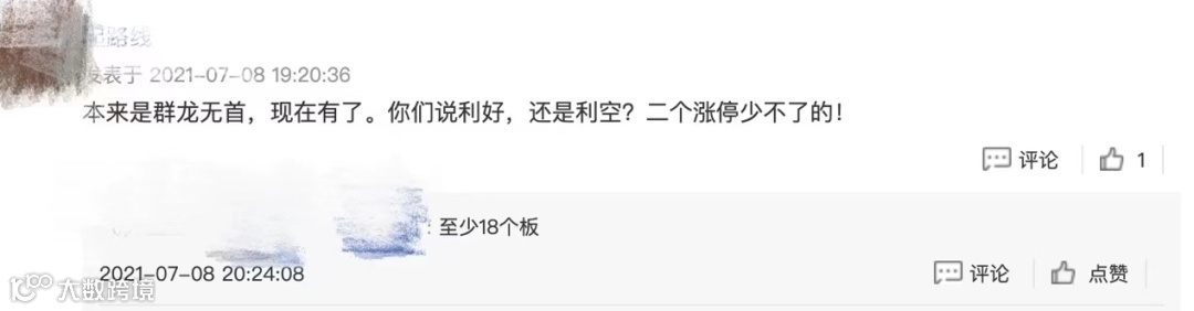 正方观点认为:“本来就是群龙无首,现在有了,你们说是利好还是利空?两个涨停少不了的。”还有投资者喊出18个涨停板的期待。