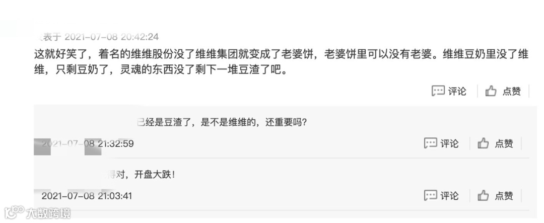 不过还有一路声音称,“著名的维维股份没了维维集团就变成了老婆饼,老婆饼里可以没有老婆,维维豆奶里没有维维只剩豆奶了。”