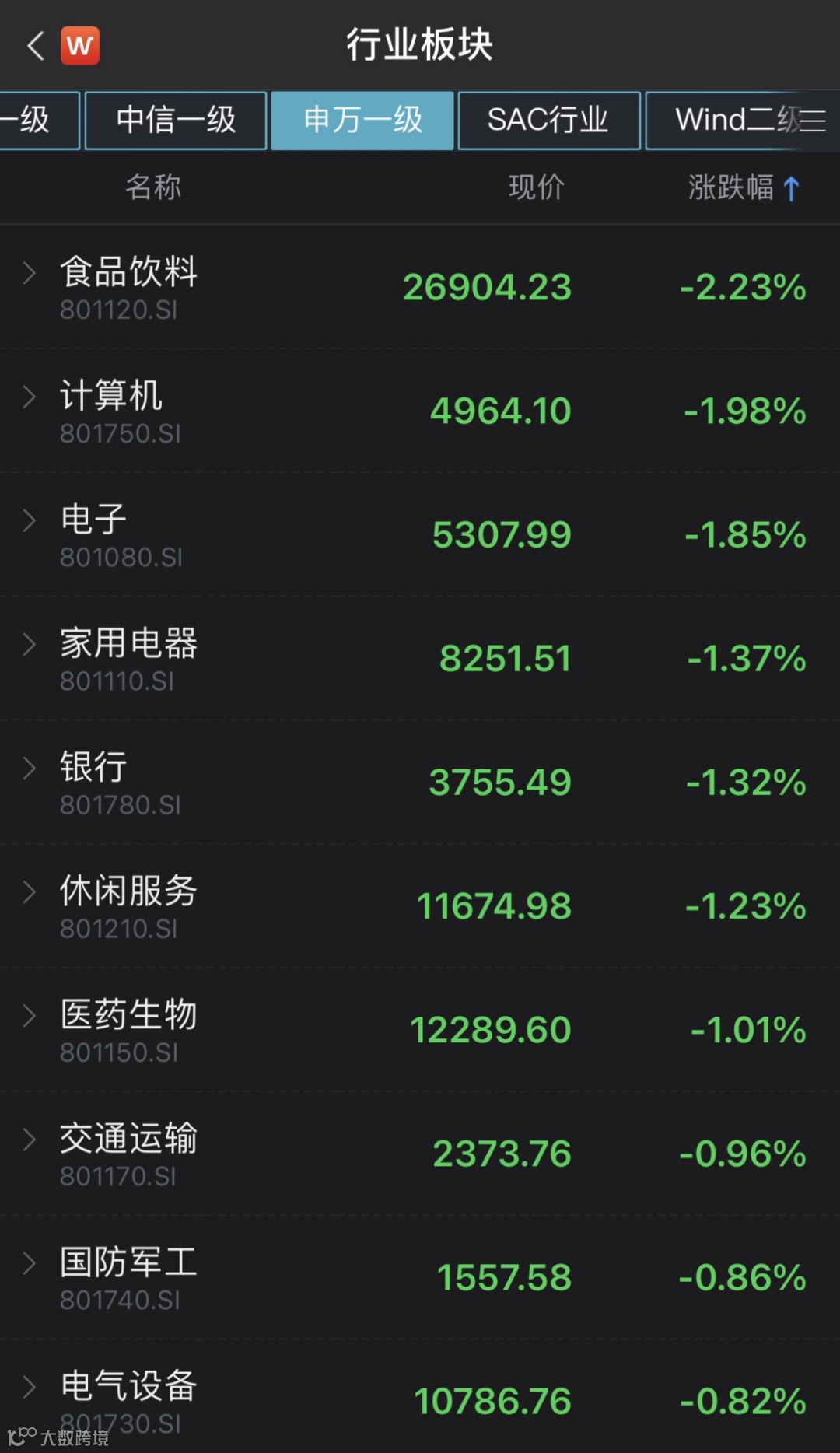 行业板块方面,申万一级行业指数中,有色金属、钢铁、综合等板块涨幅居前,食品饮料、计算机、电子等板块跌幅居前。