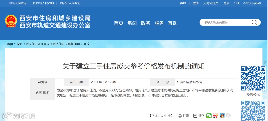 上述《通知》指出,西安市房产交易管理中心以住宅小区为单位,充分参考二手住房网签成交价格、评估价格等因素,经调查分析,形成二手住房成交参考价格,在西安市住房和城乡建设局官方网站、微信公众号等网络平台发布。