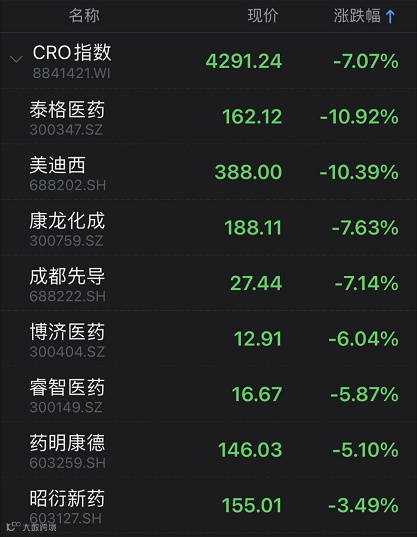 今日CRO概念股表现