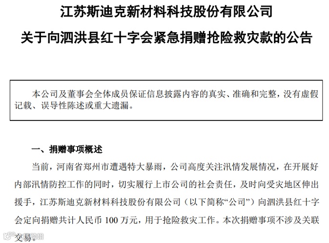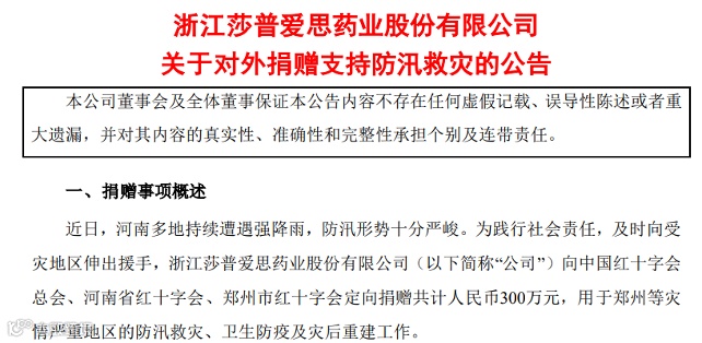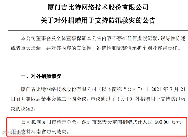 7月22日晚间,莎普爱思公告,公司向中国红十字会总会、河南省红十字会、郑州市红十字会定向捐赠共计300万元,用于郑州等灾情严重地区的防汛救灾、卫生防疫及灾后重建工作;斯迪克公告,公司向泗洪县红十字会定向捐赠共计100万元,用于抢险救灾工作;吉比特公告,公司拟向厦门市慈善总会、深圳市慈善会定向捐赠共计600万元,用于支持河南省防汛救灾。