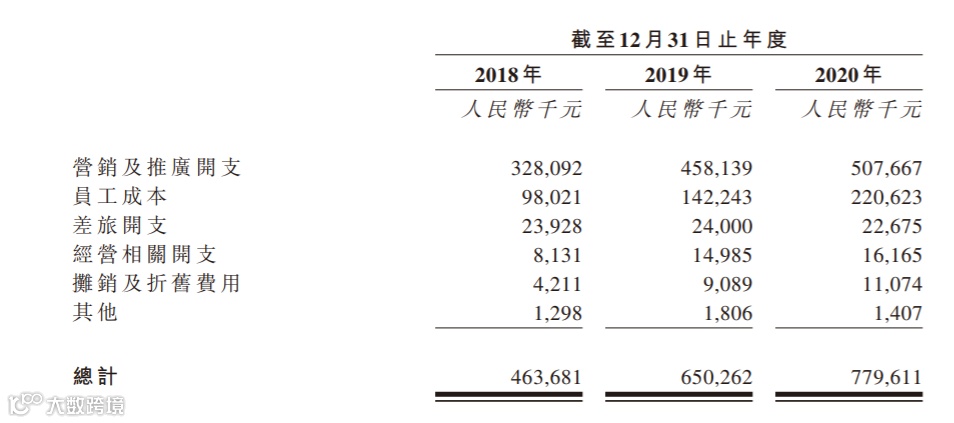 与较高的毛利率相比,雍禾医疗的净利润率不算高,主要是2018年-2020年销售及营销开支占比较高。