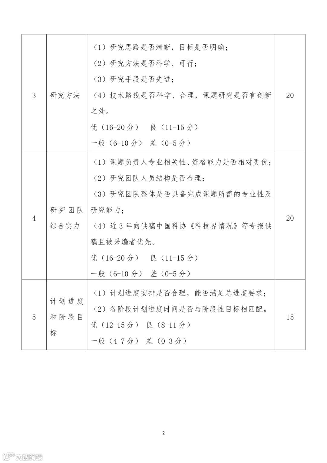 2.中国科协战略发展部将委托第三方机构对申报单位进行资格审查,符合条件的申报单位方可进入评审,采用综合评分法进行评审,评审指标详见附件2。