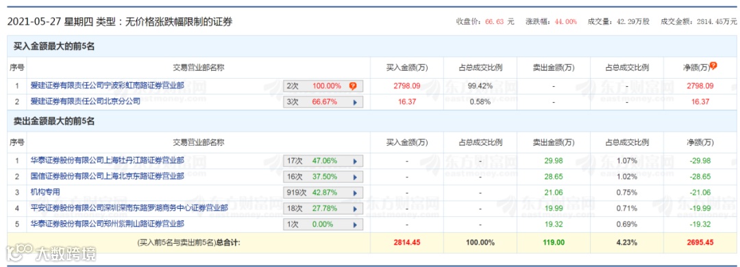 从东鹏饮料的龙虎榜来看,游资对东鹏饮料显著看好,上市第一个交易日(5月27日)就出现了游资介入而机构席位出现卖出情况。5月27日买入榜前二的爱建证券宁波彩虹南路证券营业部和爱建证券北京分公司分别买入2798.09万元、16.37万元,接了当日所有卖出筹码,而后龙虎榜中未出现这两家营业部的身影,即这两个营业部大概率持有至今。