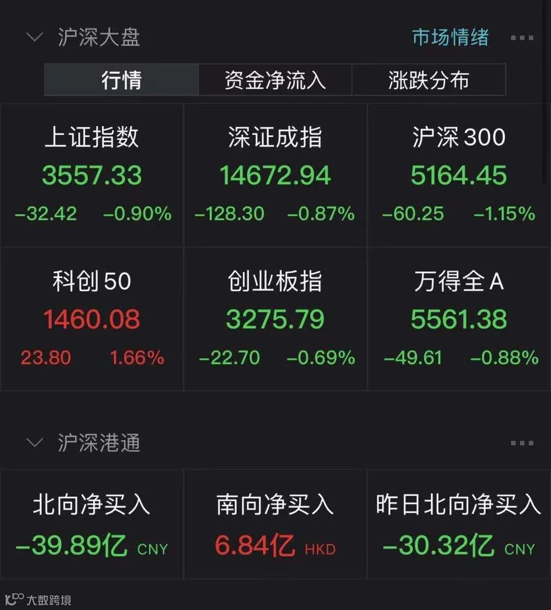 资金面上,Wind数据显示,截至午间收盘,北向资金净流出39.89亿元,其中沪股通资金净流出43.82亿元,深股通资金净流入3.93亿元。