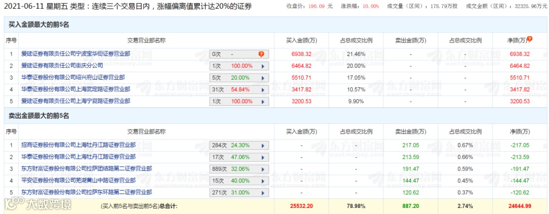 东鹏饮料6月11日的三日龙虎榜显示,买入前三席位的爱建证券宁波宝华街营业部、爱建证券重庆分公司、华泰证券绍兴府山证券营业部净买入超过5000万元。