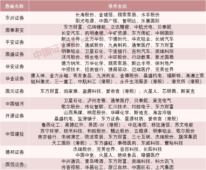 截至中国证券报记者发稿,已有中信建投、平安证券、东兴证券、国泰君安等12家券商公布了7月投资组合,其推荐的111只A股及港股“金股”涵盖了机械、电子、食品饮料、有色金属、非银金融、计算机等数十个细分领域。