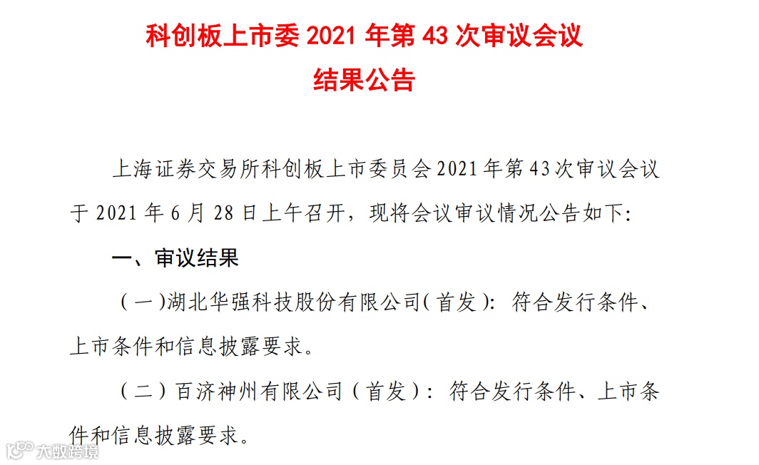 6月28日,上交所发布科创板上市委2021年第43次审议会议结果公告,百济神州首发获通过。中金公司及高盛高华为联合保荐人。