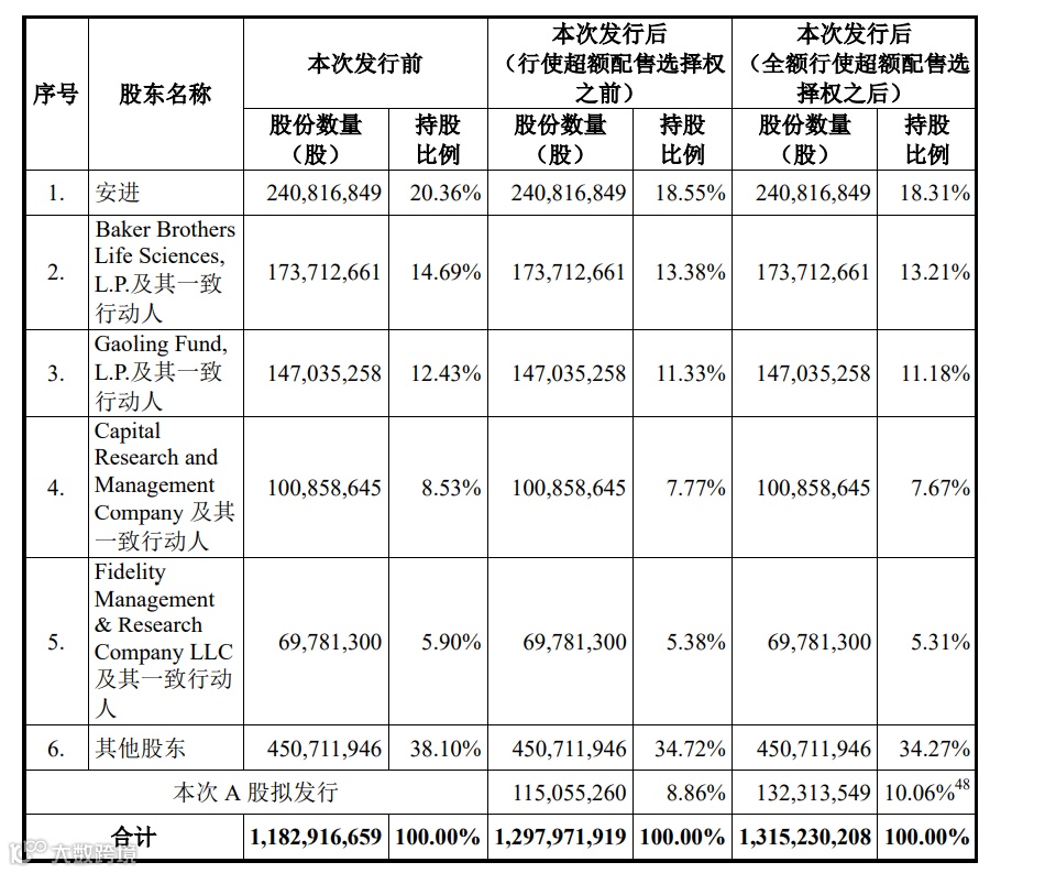安进、高瓴是重要股东