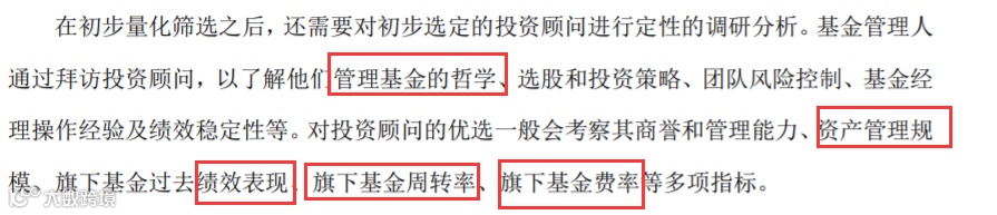 此外,华夏博锐一年持有混合(MOM)投资于股票的比例为0-45%,其中投资于港股的比例为0-50%。在投顾选择上,该基金则提出了很多具体的指标要求,除了管理基金的哲学理念外,还会考察资产管理规模、基金周转率、费率等多个量化指标。